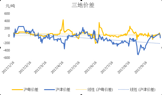 进入9月初,北方地区炼厂检修基本结束,市场流通货源日趋充裕,加之天津被列入全国严重污染城市前五名,在当地政府相关的环保政策面前,锌下游消费被抑制,拿货意愿不佳,津市升水承压下行。而上海市场消费维持平稳,升水波动不大。导致两地价差向平水靠拢。