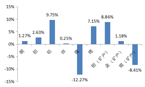图6:截止2017年11月30日全球主要金属及矿产品价格变动