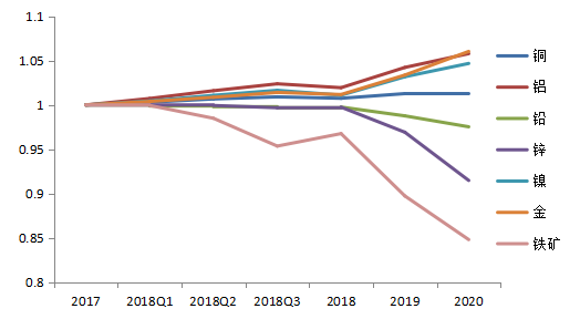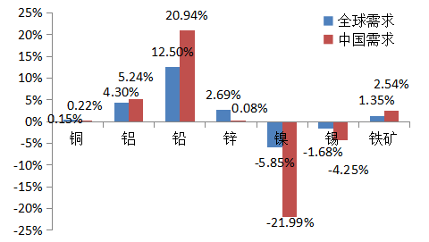图2:2017年前三季度累计全球主要金属及矿产需求同比变化